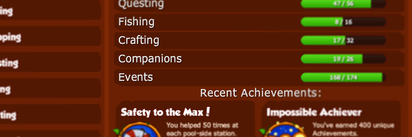 Erika/AlynianaLast Edited September 9th 2016 at 3:04 PM ![]() Ever wondered how many of the (currently) 483 achievements for Bush Whacker 2 you have that are incomplete? Now you can check easily by browsing the new categories and using the power of the Incomplete Only toggle! More details can be found on the blog! Chat about the improvements here! (Plus we made some typo and area fixes for the Spine of the World content!) |